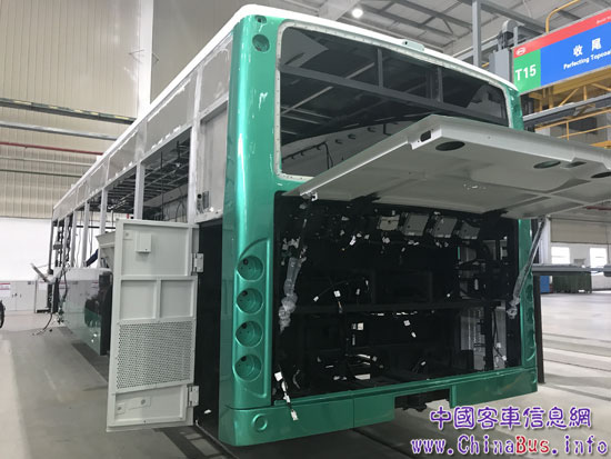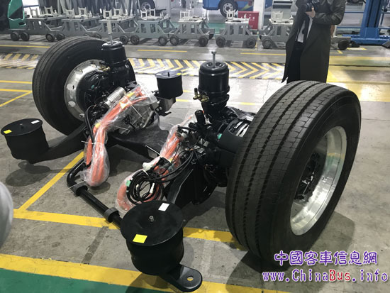 底盤(pán)車間——低壓電器安裝、前后橋及轉(zhuǎn)向機(jī)構(gòu)安裝、高壓線束安裝、冷卻系統(tǒng)安裝、電池包安裝等工序在這完成。比亞迪客車底盤(pán)采用重防腐工藝,油漆系統(tǒng)耐久性可以經(jīng)受長(zhǎng)達(dá)1440小時(shí)鹽霧實(shí)驗(yàn)的考驗(yàn),保證整車使用12年以上。同時(shí)其使用的防護(hù)蠟、抗石擊涂料,能有效防止底盤(pán)過(guò)早腐蝕并起到降噪的作用。