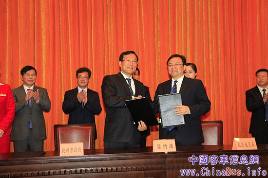“2014年4月29日下午,杭州市人民政府與比亞迪汽車工業(yè)有限公司在省人民大會(huì)堂簽署共同推進(jìn)新能源汽車推廣應(yīng)用和產(chǎn)業(yè)發(fā)展戰(zhàn)略合作框架協(xié)議。