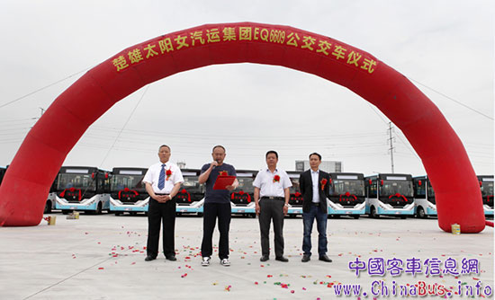 2017年5月5日,“楚雄太陽(yáng)女汽運(yùn)集團(tuán)EQ6609CT公交車(chē)交付儀式”在東風(fēng)超龍公司隆重舉行,云南楚雄太陽(yáng)女汽運(yùn)集團(tuán)董事長(zhǎng)李石喬、東風(fēng)超龍副總經(jīng)理胡大洪等領(lǐng)導(dǎo)蒞臨現(xiàn)場(chǎng),共同見(jiàn)證了這一精彩時(shí)刻,9輛東風(fēng)超龍EQ6609CT 公交車(chē)正式交付楚雄太陽(yáng)女汽運(yùn)集團(tuán)(以下簡(jiǎn)稱(chēng)為:太陽(yáng)女集團(tuán))旗下的武定縣恒通公交有限公司。