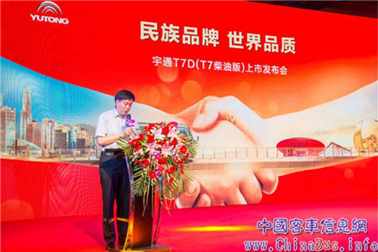 “今日之中國已今非昔比,作為崛起中國力量的代表,宇通之志,在于為國人提氣,為中華增光?!?月10日,在宇通T7D(柴油版)上市發(fā)布會現(xiàn)場,宇通客車國內(nèi)營銷總監(jiān)王建軍如是說道。