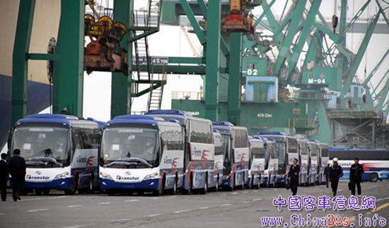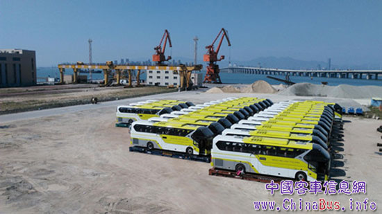 出口海外的金龍客車正整裝待發(fā)