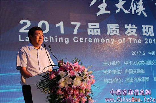 中國(guó)交通報(bào)社黨委書(shū)記、社長(zhǎng)蔡玉賀在啟動(dòng)儀式上表示,2016品質(zhì)發(fā)現(xiàn)之旅活動(dòng)的開(kāi)展是運(yùn)輸產(chǎn)業(yè)鏈條的創(chuàng)新之舉,借助行業(yè)管理部門(mén)、權(quán)威媒體搭建了客車(chē)制造企業(yè)與用戶(hù)的橋梁,深入推進(jìn)著我國(guó)交通運(yùn)輸領(lǐng)域的全面轉(zhuǎn)型升級(jí)。2017品質(zhì)發(fā)現(xiàn)之旅作為交通運(yùn)輸部主辦的重大主題活動(dòng),將持續(xù)推進(jìn)“品質(zhì)升級(jí)”,承擔(dān)宣傳交通運(yùn)輸行業(yè)轉(zhuǎn)方式調(diào)結(jié)構(gòu)舉措成效的重任,助力道路運(yùn)輸行業(yè)全價(jià)值鏈環(huán)節(jié)的全面升級(jí)。