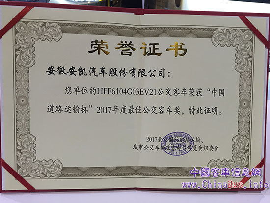 新能源已成為當下及未來中國汽車發(fā)展的方向,在火熱的純電動公交領域,安凱G9同樣再拔頭籌,摘得“最佳公交客車獎”。