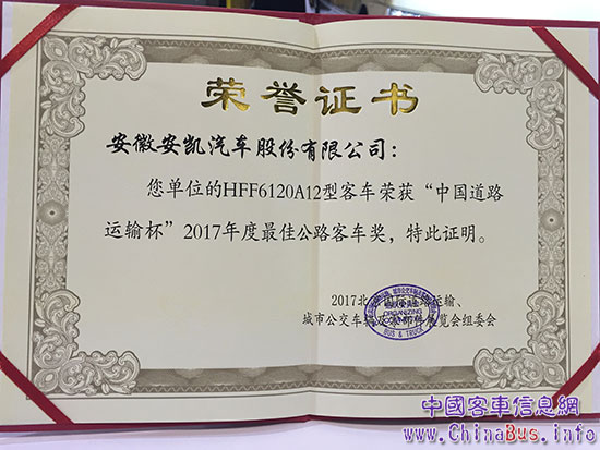 A9高端客車獲“最佳公路客車獎”