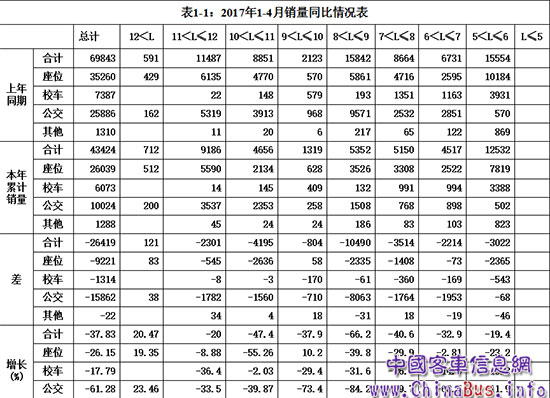 “2017年1-4月,中國客車統(tǒng)計(jì)信息網(wǎng)的50家企業(yè)累計(jì)銷售5米以上客車43424輛,同比下降37.83%,其中座位客車(公路客車)下降26.15%,校車下降17.79%,公交客車下降61.28%,客車銷售趨勢(shì)不容樂觀?!苯眨?017客車技術(shù)發(fā)展論壇上,中國公路學(xué)會(huì)客車分會(huì)副秘書長佘振清作了題為“2017年1-4月客車市場(chǎng)現(xiàn)狀及2017年基本判斷”的行業(yè)報(bào)告。