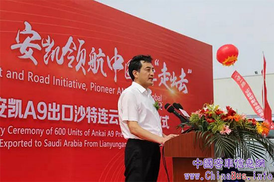 安凱客車(chē)董事長(zhǎng)戴茂方在發(fā)車(chē)儀式上致辭