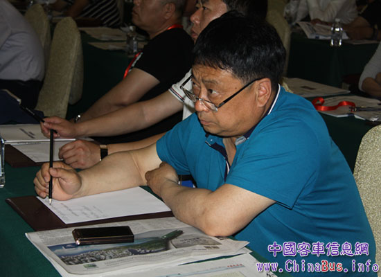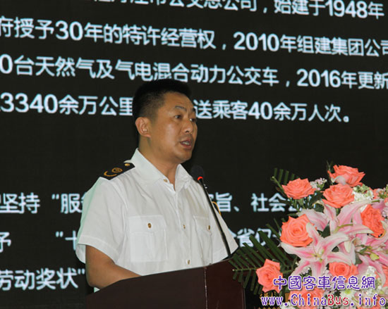 認(rèn)真地分享——牡丹江公交集團(tuán)有限公司總經(jīng)理助理劉葆春正在分享新能源公交運營經(jīng)驗。