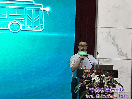 湘潭市公共交通有限公司副總經(jīng)理郭強(qiáng)在交流會(huì)現(xiàn)場(chǎng)分享新能源公交運(yùn)行經(jīng)驗(yàn)