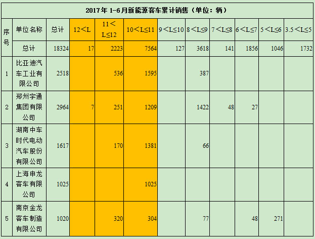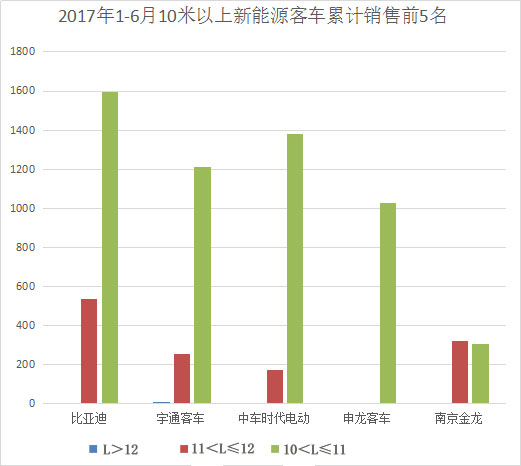 2017年1-6月10米以上新能源客車?yán)塾嬩N售前5名