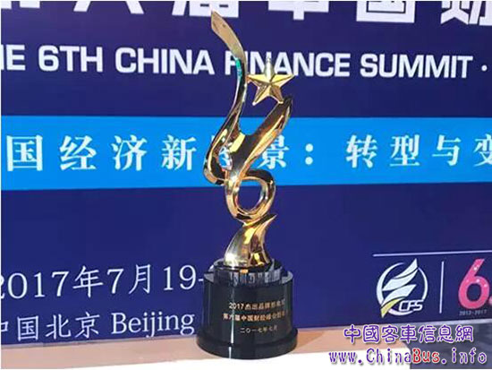 中通客車獲中國財經(jīng)峰會“2017杰出品牌形象獎”