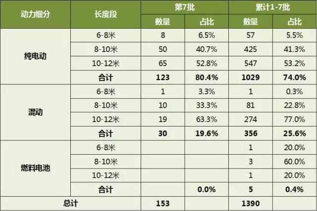第1-7批新能源客車推廣應(yīng)用推薦車型細(xì)分市場(chǎng)統(tǒng)計(jì)