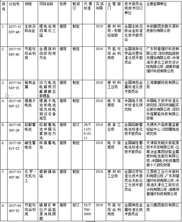 工信部發(fā)布2017年第二批行業(yè)標(biāo)準(zhǔn)制修訂計(jì)劃,涉及8項(xiàng)動力電池標(biāo)準(zhǔn)