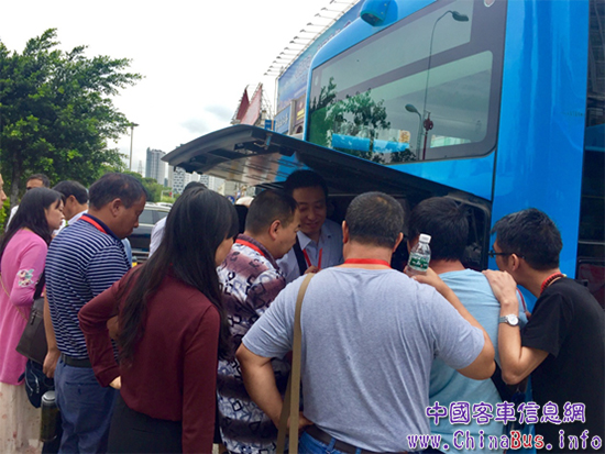 宇通工作人員為嘉賓們講解宇通技術(shù)優(yōu)勢