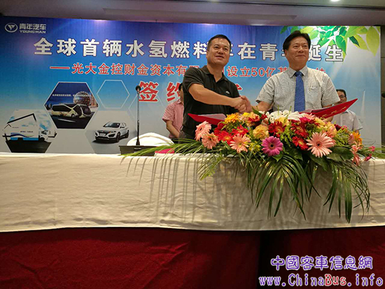 今天(2017年8月21日),全球首輛水氫燃料汽車在青年汽車誕生暨光大金控財金資本有限公司設(shè)立50億基金支持青年新能源汽車發(fā)展簽約儀式在浙江金華舉行。光大金控財金資本有限公司董事長李少平,青年汽車集團董事局主席、總裁龐青年等嘉賓出席了簽約儀式。