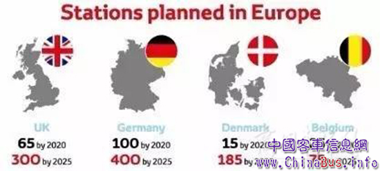 歐洲已經(jīng)擁有超過100個(gè)加氫站,加氫站的選址也具有戰(zhàn)略前瞻性,主要選址于大城市以及相連的主干道上。德國目標(biāo)到2017年建成100座加氫站,到2023年建成400座加氫站,屆時(shí)德國高速路上每隔90公里就有一座加氫站,每個(gè)城市區(qū)將至少有10座加氫站。
