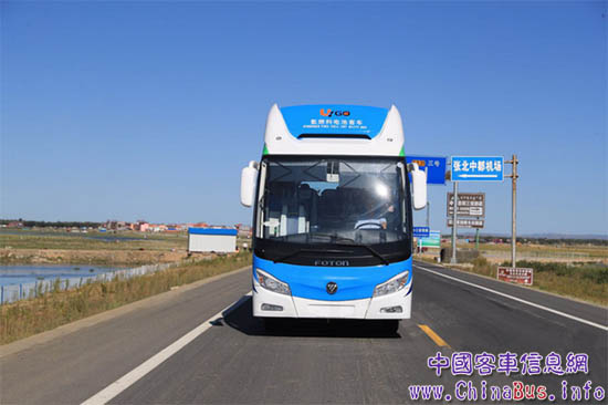 福田歐輝8.5氫燃料電池客車行駛在張北草原,表現(xiàn)出卓越的動(dòng)力性和性能穩(wěn)定性