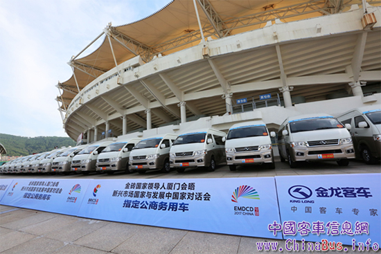 9月3日至5日,金磚國家領(lǐng)導(dǎo)人第九次會晤在福建廈門圓滿舉行。承擔(dān)此次會晤出行服務(wù)的233輛金龍客車,為出席金磚八方貴賓提供舒適、安全、便捷的會務(wù)通勤,以“匠心”品質(zhì)和“國車”使命完成了服務(wù)世界級重大盛會的任務(wù),展示中國客車自主品牌的風(fēng)采。