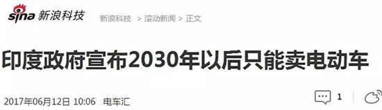 2017年6月,印度:2030年禁售燃油車,只能賣電動車。