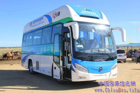 福田歐輝氫燃料電池客車奔跑在張北草原上