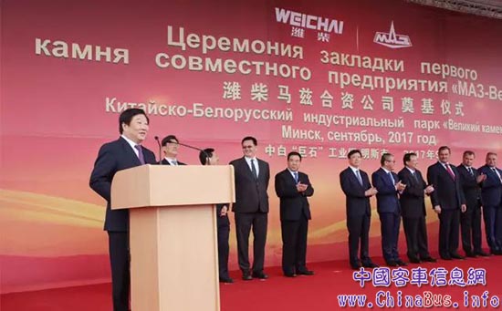 白俄羅斯時(shí)間9月13日,濰柴集團(tuán)與白俄羅斯馬茲集團(tuán)正式成立濰柴馬茲合資公司,并于當(dāng)天舉行奠基儀式,成為入駐中國(guó)-白俄羅斯工業(yè)園(下稱中白工業(yè)園)的第二十家企業(yè)。