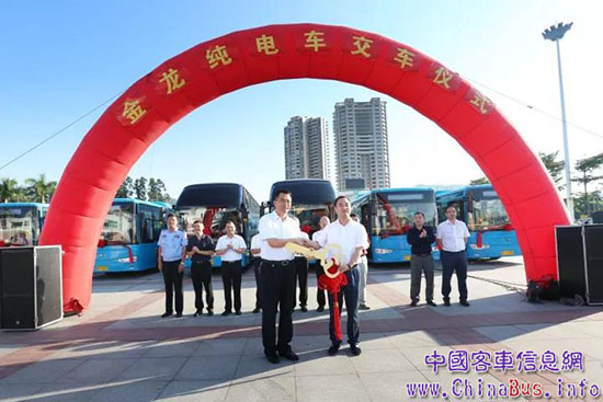 9月27日,批量金龍純電車交車儀式在福建漳州港客運(yùn)碼頭隆重舉行,本次交付包括11輛XMQ6106純電動(dòng)公交和4輛新五系XMQ6125HY旅游大巴。