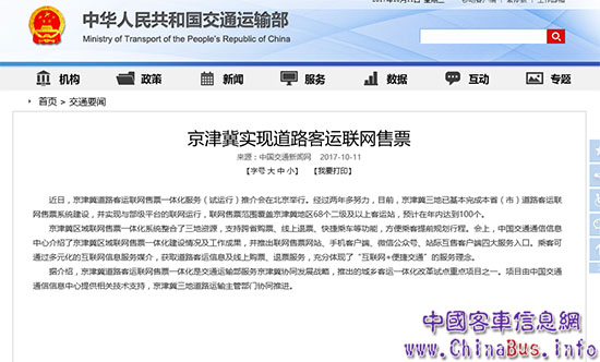 據(jù)介紹,京津冀道路客運聯(lián)網售票一體化是交通運輸部服務京津冀協(xié)同發(fā)展戰(zhàn)略,推出的城鄉(xiāng)客運一體化改革試點重點項目之一。項目由中國交通通信信息中心提供相關技術支持,京津冀三地道路運輸主管部門協(xié)同推進。