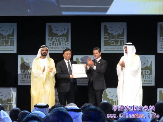 墨西哥總統(tǒng)恩里克·培尼亞·涅托為比亞迪董事長兼總裁王傳福頒發(fā)“扎耶德未來能源獎”個人終身成就獎