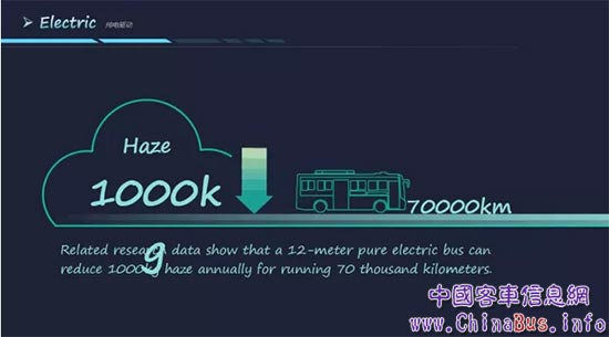 據(jù)相關(guān)研究數(shù)據(jù)表明,1輛12米純電動公交年運行7萬公里,每年能夠減少1000kg的霧霾量。