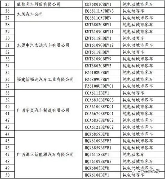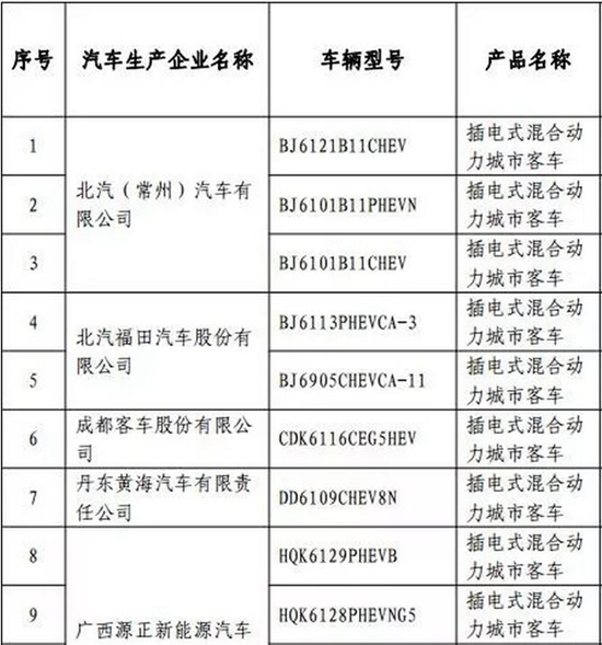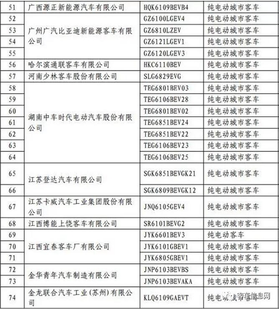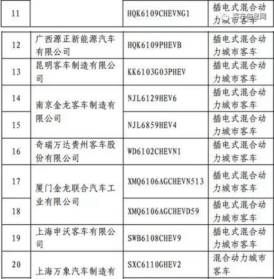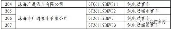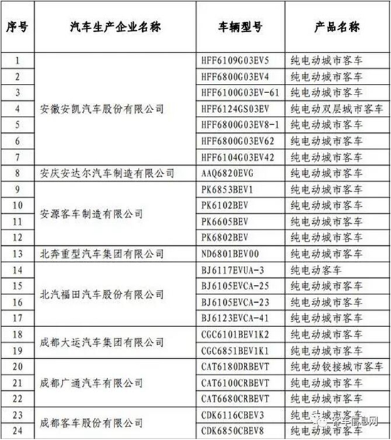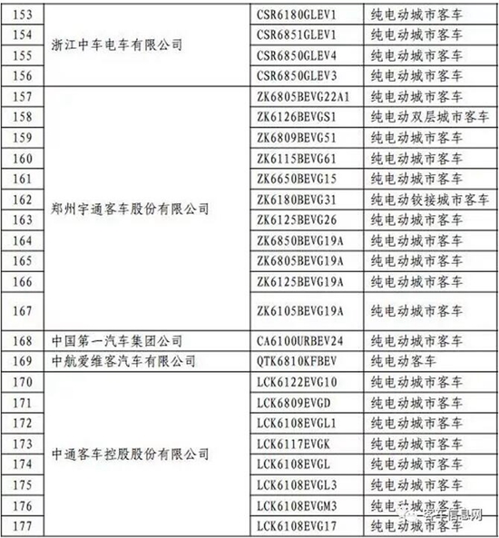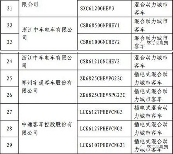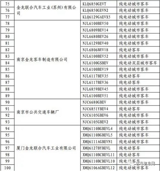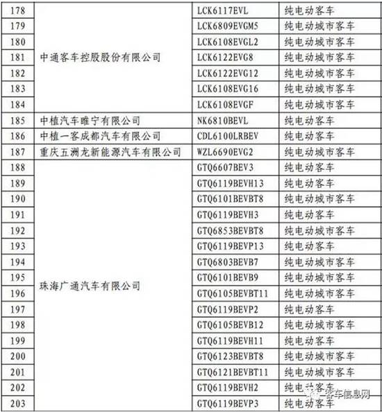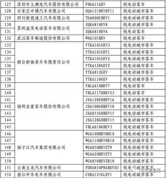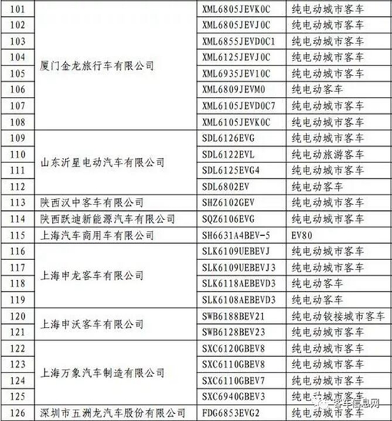 以下為入選客車(chē)目錄表