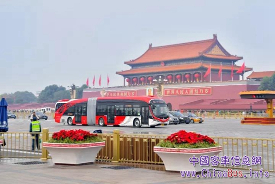 10月22日,18米純電動(dòng)公交車在北京1路運(yùn)營(yíng)