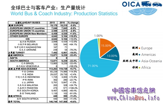 目前全球巴士與客車產(chǎn)業(yè)歐盟相關(guān)的研究項目包括:零排放的城市巴士系統(tǒng)、歐洲未來巴士系統(tǒng)、城市公共交通的電動化等。隨后,王健還介紹了全球巴士與客車產(chǎn)業(yè)的生產(chǎn)情況,具體如下圖: