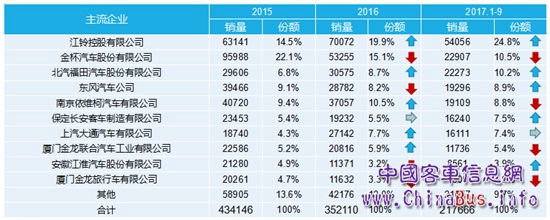 市場越是不好,競爭越是激烈。近些年,輕客企業(yè)市場表現(xiàn)明顯出現(xiàn)分化,可謂“幾家歡喜幾家愁”。其中,江鈴股份有限公司、北汽福田汽車股份有限公司近兩年銷量呈現(xiàn)持續(xù)增長態(tài)勢。江鈴股份有限公司則成了近兩年輕客市場的最大“歡喜者”,2015年輕客的銷量為63141輛,2016年的銷量為70072輛,同比增長19.9%,2017年1-9月份的銷量為54056輛,同比增長24.8%。