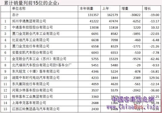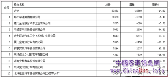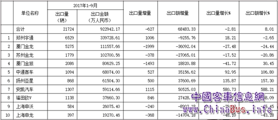 今年前9個月傳統(tǒng)客車銷量列前10位的企業(yè):