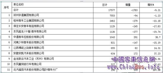 雖然客車市場整體上比較疲軟,從企業(yè)的表現(xiàn)來看,仍有一批企業(yè)在不同的領(lǐng)域表現(xiàn)突出。