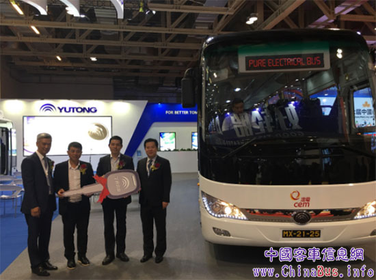 在展會(huì)期間,宇通客車海外市場(chǎng)部副部長(zhǎng)常浩與澳門電力股份有限公司(簡(jiǎn)稱:澳電)首席顧問(wèn)岳宗斌進(jìn)行了電動(dòng)巴士交車儀式。