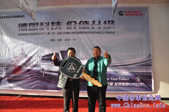 【天津福匯通汽車貿(mào)易有限公司圖雅諾品牌經(jīng)理賈萱先生與福田輕型商用車事業(yè)本部營銷公司商務(wù)汽車市場部經(jīng)理徐德國先生為福田圖雅諾國V新品揭幕】