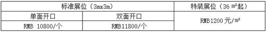 □標準展位:中英文名稱楣板、圍板、一張玻璃圓桌、一張資料臺、四把椅子、普通照明。
