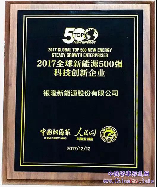 銀隆新能源憑借不斷創(chuàng)新的精神和優(yōu)異的市場表現(xiàn)再次榮登全球新能源企業(yè)500強(qiáng)榜單,位列全球第114位,比上一年上升了31個位次。同時榮獲"2017全球新能源500強(qiáng)科技創(chuàng)新企業(yè)"獎項。