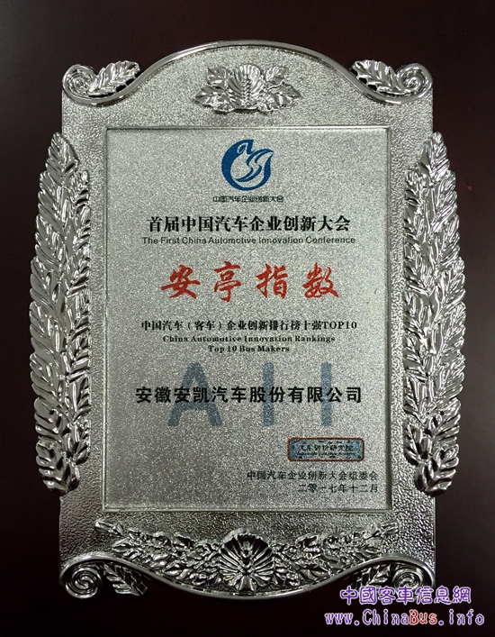 12月9日,以“創(chuàng)新 轉(zhuǎn)型 做強”為主題的首屆中國汽車企業(yè)創(chuàng)新大會在上海安亭隆重舉行,會上發(fā)布了標志中國汽車企業(yè)創(chuàng)新水平的“安亭指數(shù)”。憑借在創(chuàng)新投入、經(jīng)濟產(chǎn)出、技術(shù)結(jié)構(gòu)等方面的突出優(yōu)勢,安凱客車榮登中國汽車(客車)企業(yè)創(chuàng)新排行榜第二名,同時在(研究與開發(fā))經(jīng)費排行榜和商用車發(fā)明專利排行榜單中也名列前茅,以優(yōu)異的成績詮釋新時代浪潮下的“中國企業(yè)創(chuàng)新”。