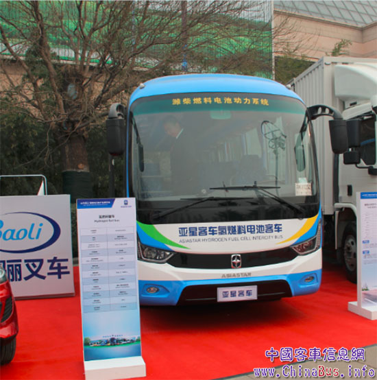 在十九大報(bào)告中,習(xí)近平總書記提到“我們要建設(shè)的現(xiàn)代化是人與自然和諧共生的現(xiàn)代化,要提供更多優(yōu)質(zhì)生態(tài)產(chǎn)品以滿足人民日益增長的優(yōu)美生態(tài)環(huán)境需要。” 亞星客車一直積極打造更加綠色高效的產(chǎn)品并以“為全球提供一流的大眾交通生活”為使命。亞星首臺(tái)氫燃料電池客車隆重亮相本次商務(wù)年會(huì),氫燃料電池是一種將氫氣與氧氣發(fā)生電化學(xué)反應(yīng)產(chǎn)生電能的裝置,不同于蓄電池,其過程不涉及燃燒,無機(jī)械損耗,能源轉(zhuǎn)化率高,產(chǎn)物僅為電、熱和水蒸氣。該車型整備質(zhì)量6.6噸由氫燃料電池發(fā)電,整車?yán)m(xù)駛里程大于300公里,每百公里電耗小于35度車輛行駛最高時(shí)速可達(dá)95公里/小時(shí)以上,與蓄電池純電動(dòng)客車相比更加綠色高效。