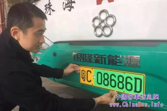 12月29日上午,新能源綠色車牌粵C08686D在珠海公交12米純電動公交車掛牌,這是銀隆新能源交付珠海珠海公交的車輛之一,標(biāo)志著新能源車牌正式落地珠海。
