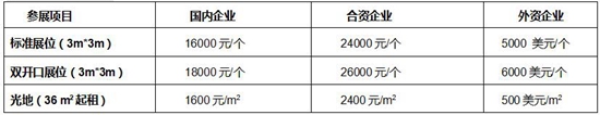 標(biāo)準(zhǔn)展位: (3M×3M)展位(包括三面圍板、楣板、一桌二椅、220V電源插座、地毯、清潔費(fèi)等)。