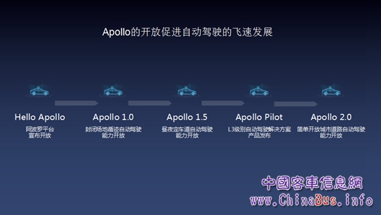 從阿波羅平臺宣布開放,到封閉場地循跡自動駕駛能力開放的Apollo 1.0、晝夜定車道自動駕駛能力開放的Apollo 1.5、L3級別自動駕駛解決方案產(chǎn)品Apollo Pilot的發(fā)布,再到簡單開放城市道路自動駕駛能力開放的Apollo 2.0,阿波羅平臺的開放促進著自動駕駛的飛速發(fā)展。
