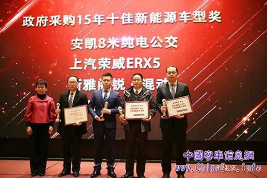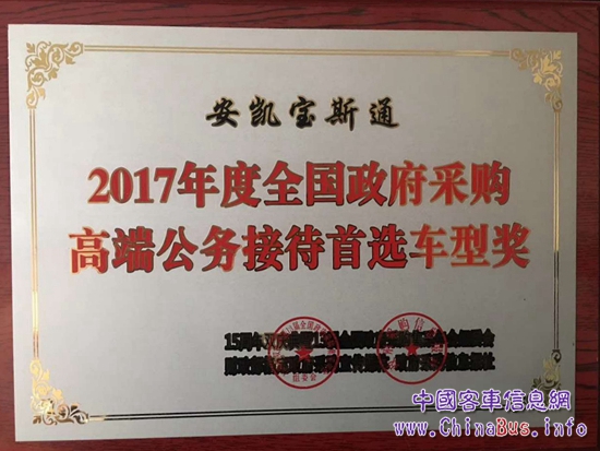 安凱客車作為優(yōu)秀汽車供應(yīng)商代表應(yīng)邀參加了此次年會,經(jīng)過網(wǎng)絡(luò)投票和評標專家的評審,安凱客車榮獲兩項重量級大獎——安凱寶斯通榮獲“2017年度全國政府采購高端公務(wù)接待首選車型獎”、安凱8米純電公交車榮獲“政府采購15年十佳新能源車型獎”。榮譽的背后是對安凱客車多年來在政府采購領(lǐng)域出色表現(xiàn)的充分肯定。