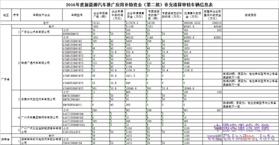 1月18日,工信部公示了2016年度新能源汽車推廣應用第二批補助資金補充清算申請材料初步審核情況。此次共有14家企業(yè)的15131輛新能源車申報補貼,總金額為近32億元,實際通過專家組核定的車輛共14729輛,應清算補助資金30億元。