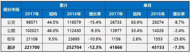 2017年年度中國(guó)客車細(xì)分市場(chǎng)銷售情況