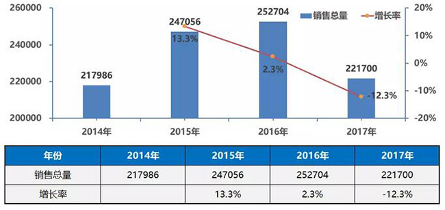 1、隨著需求的增長(zhǎng)和新能源補(bǔ)貼拉動(dòng)的銷量,客車銷量一路高歌持續(xù)增長(zhǎng)至2016年達(dá)到頂峰,總銷量超過(guò)25萬(wàn)輛,2017年萎縮至22萬(wàn)輛。