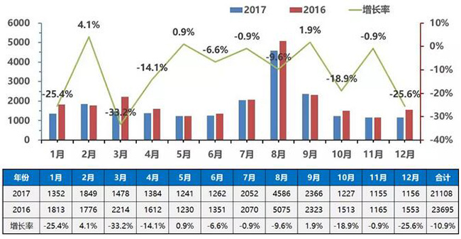 2017年年度中國(guó)公交車銷量走勢(shì)圖