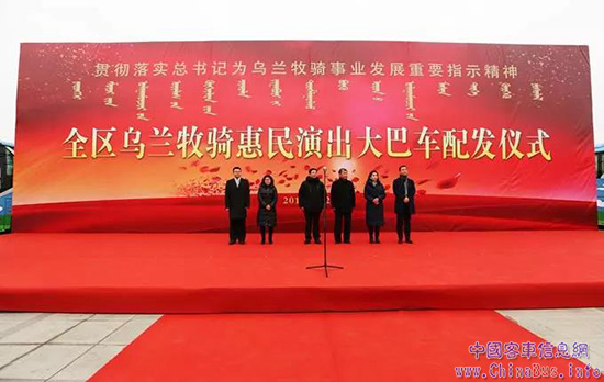 全區(qū)烏蘭牧騎惠民演出大巴車配發(fā)儀式現(xiàn)場