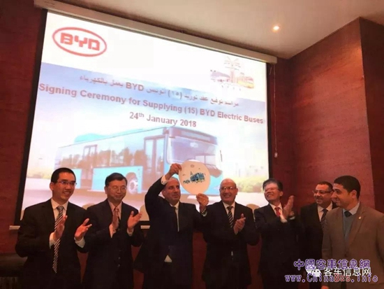 當(dāng)?shù)貢r(shí)間1月24日,埃及亞歷山大省客運(yùn)局創(chuàng)造了一個(gè)歷史——與比亞迪簽署訂購15輛純電動(dòng)巴士訂單協(xié)議,由此埃及將迎來歷史上首批純電動(dòng)巴士,開啟公交電動(dòng)化新時(shí)代。這是埃及順應(yīng)全球能源變革,改善交通環(huán)境邁出的歷史性的一步。